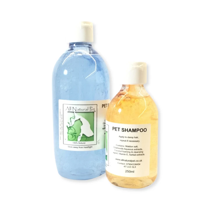 A natural chemical free pet shampoo which helps to give a healthy, hydrated, shiny skin and coat, and long lasting scent & freshness